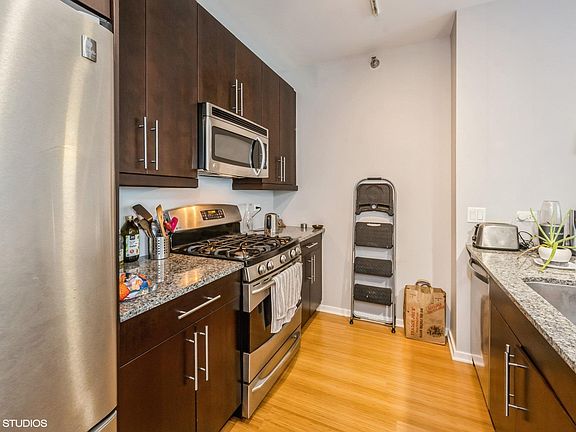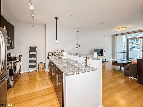 Spacious 1 bedroom in the heart of West Loop. Unit features hardwood floors, south facing windows letting in all day natural light, stackable washer/dryer & private balcony for grilling out. Kitchen has stainless steel appliances, espresso cabinetry, granite counter tops & breakfast bar seating for casual dining. The expansive bedroom offers an organized walk-in closet and the bathroom is equipped with a soaking tub, standing shower & ample storage. This rare full amenity building has 24 hour door staff, receiving room, workout room, two party rooms & a business center. Walking distance to Mrianos, whole foods, Randolph street and public transit. East access to the highway. Parking available in the building. Rent includes heat, air conditioning, Internet & TV/Cable. Tenant only pays for electricity! Rent includes heat, air conditioning, Internet & TV/Cable. Tenant only pays for electricity!