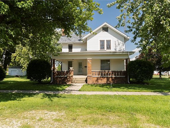 You won’t want to miss this charming well-maintained 4-bedroom 2 full bath property in the quiet town of Chrisman. Located on a corner lot just a block away from local amenities! You will be welcomed by the covered front porch with updated concrete floors where you can enjoy your morning coffee or unwind in the evening. Cozy up next to the gas fireplace to read a good book during those chilly fall and winter nights. You will love the original woodwork throughout and there is extra storage within the built-ins in the large formal dining room. In addition to the oversized 1-car attached garage, there is a detached 2-car garage with a half-bath for all those extra hobbies. One of the bedrooms is located on the first floor next to a bathroom for your convenience. Many updates include a new roof in 2021, a new hot water heater in 2021, a new boiler system in 2023, and many replacement windows! This is a must-see, schedule your appointment today!