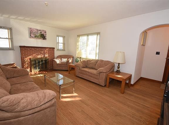 Don't miss this cozy brick bungalow offering two bedrooms, large living room w/wood-burning fireplace, eat-in kitchen and full bath on the main level. Lots of storage in this home, including two closets in each bedroom, large hall closet, lots of cabinets in the kitchen and MORE. Full unfinished basement includes shower and stool. There is a screened breezeway leading to the large two-car garage. The garage is in the rear of the home, side loading. There is a pet electronic fence that will stay with the property, too. Original woodwork, arched doorways and hardwood flooring are just a few of the special features of this home! HMS Home Protection plan offered by seller. This home is ready for a NEW owner!