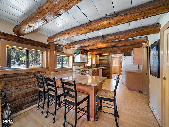 Welcome to this fabulous hidden mountain getaway! Charming historic log cabin originally owned by Tom Lockett in 1905, located on 7.5 acres in a gated & secluded community with a privatelake in Williams! Views of the Lockett Springs lake surrounded by National forest are breathtaking asyou enter the property. The memorable cabin features 3 bedrooms/2 bathrooms with upgrades throughout while also keeping some of the original rustic charm. Warm up next to the cozy wood fireplace as you watch the snowfall or enjoy the spacious covered porch in the beautiful summertime. Fresh spring water from the lake is the water supply to the cabin. There is also a detached carport area with a bonus game room & wood stove. This property also allows the potential to build a larger primary home on the lot, while keeping the cabin as a guest house. Only 10 minutes to downtown Williams, shopping, restaurants, Grand Canyon Railway & Bearizona. Don't miss out on this opportunity to own a piece of history in Williams AZ!