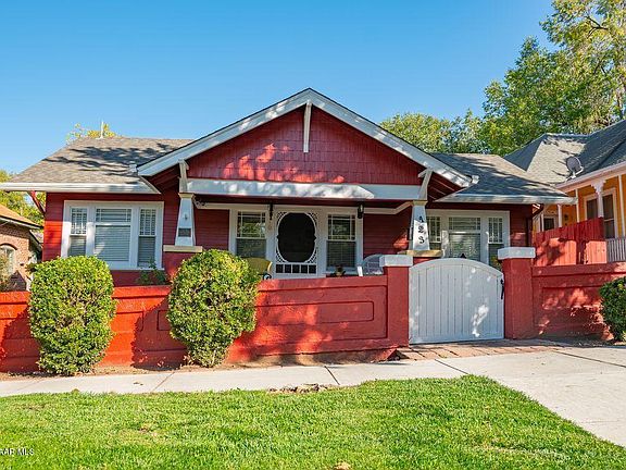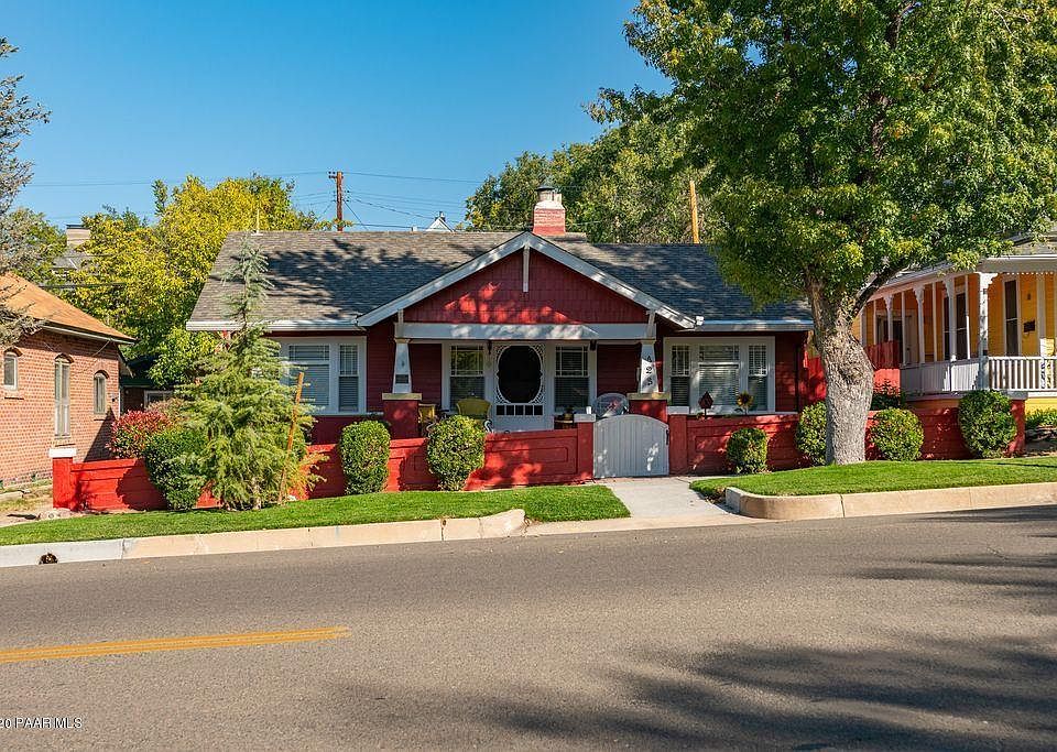Completely remodeled Craftsman Bungalow in historic downtown Prescott, AZ updated for modern living while preserving original period details like leaded glass, built-ins, fireplace and covered front porch with classic tapered columns. Low taxes thanks to National Register of Historic Places designation. Currently a thriving vacation rental. Surrounded by tall shade trees with private fenced paver courtyard with lawn, hot tub, large storage shed and a rare oversized 2 1/2 car garage. New owner's suite with tiled shower, hand scraped hickory floors from North Carolina, roof, heating and cooling, covered gutters, electrical panel, interior and exterior paint, granite island, landscaping and irrigation, attic fans in garage, new garage door opener, crown molding and new baseboards. Walk to