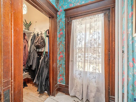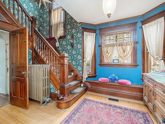 This Victorian gem, dating back to the turn of the century, offers a rare opportunity to own a piece of local history. Bursting with original charm and character, the main floor showcases meticulously maintained herringbone hardwood floors, a spacious living area with a gas fireplace, and elegant pocket doors. The formal dining area beckons for gatherings, while the stainless steel appliances in the kitchen add modern convenience. A half bath completes the main level. Upstairs, four generously sized bedrooms await, each with ample closet space. The loft area promises abundant storage potential, and the basement provides over lots of unfinished space. Outside, a fenced yard and a 2-car garage complete this exceptional home.