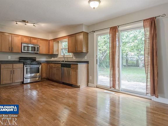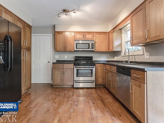 Like new, move right into this family friendly home! You'll love the upgraded kitchen with pantry, new counters, sink, faucet, all appliance remain. Doors lead to patio and large fenced yard. Opens to the living room with wood floors throughout. Newer roof, gutters, windows, furnace, air, hot water heater, flooring, paint and totally remodeled baths with tiled shower. Mint condition. Family room in the lower level features a bar area perfect for entertaining.