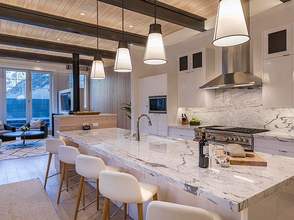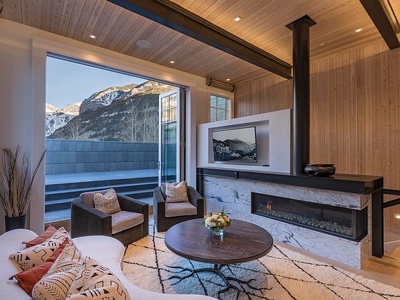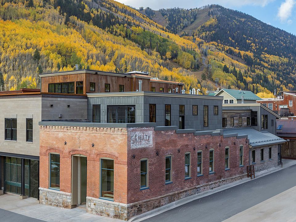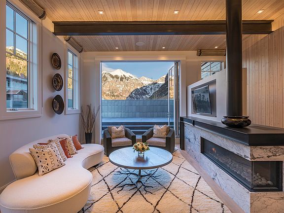 Newly constructed and refined townhome residence located within the old ''red light district'' of the Historic Core of Telluride. Views from expansive decks capture the box canyon, Bear Creek and Ski Resort that will be forever protected. Sophisticated, mountain modern interiors offer an engaging contrast to the buildings' brick, steel and stone exterior. Expansive window openings, not only frame dramatic views, but capture the warmth of all day sun. A one half block stroll to Colorado Avenue's restaurants and shops underscores the convenience of the ''mountain resort, urban lifestyle.'' The Historic Senate originally built in late 1800's, once advertised ''$7 per week for a room, 25 cents for a meal and a private lighting plant.'' Purported to be a cigar store, restaurant and soft drink parlor, The Senate was patronized by mostly men visiting one of Telluride's most beloved madams – Big Billy. The top floor comprises a grand and open floor plan ideal for family dining and entertainment that features a full wall of retractable, glass doors framing the Telluride Peaks and opening upon a spacious deck that is seemingly a part of the residence's interior. A two sided, corner fireplace with white Venatino Marble surround, warms a living area with French White Oak floors and white washed Larch ceilings and accents. The adjoining chef's kitchen with custom handcrafted high gloss acrylic cabinetry and Wolf / Sub Zero appliances adjoins a dining area with seating for ten. A living area, half bath and the master bedroom with ensuite bath that includes a steam shower, wet- style vanities, laundry and finished with Ann Sacks tiles and completes the upper level plan. The main level includes a second master suite, guest bedroom, mudroom with built in cabinetry and laundry. A separate space designated commercial on the main level (589 SF approx.) is being sold with this residence offering its owner the possibility for a home office or income production. The garden / finished basement level offers a generous game / flex, media and bunk room --- all exquisitely appointed and finished.