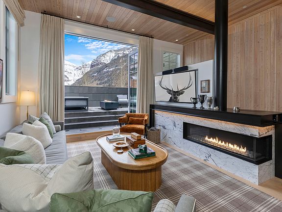 This redeveloped historic townhome is now available for purchase. Located just one-half block off main street where you can stroll to restaurants and shops underscores the convenience of the ''mountain resort, urban lifestyle.'' The top floor was designed to flow with an excellent open floor plan ideal for family dining and entertainment. A wall of retractable, glass doors framing the Box Canyon opens upon a spacious deck that is seemingly a part of the residence's interior. This is a great place to take in the 360 degree views while sitting in the hot tub or listening to music from Town Park. Expansive window openings and high ceilings on the top floor, not only frame dramatic views, but capture the warmth of all day sun. A two-sided, corner fireplace with white Venatino Marble surround, warms a living area with French White Oak floors and whitewashed Larch ceilings and accents. The adjoining chef's kitchen with custom handcrafted high gloss acrylic cabinetry and Wolf/Sub Zero appliances adjoins a dining area with seating for 8. A living area, half bath and the master bedroom with ensuite bath that includes a steam shower, soaking tub, wet- style vanities, laundry and finished with Ann Sacks tiles completes the upper-level.