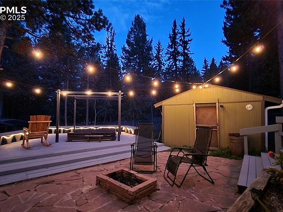 Mountain Oasis on a private and spacious 1 Acre lot in town, a Truly Unique Property. Mountain Home with Modern Amenities and Convenient Access to Downtown Woodland Park. This home is an outdoor lover’s dream. Come fall in love with this beautifully maintained mountain home with modern amenities featuring 3 spacious bedrooms, 2 full baths. New steel roof installed in 2021. Gorgeous vaulted ceilings, a beautiful statement cedar wall in the living room. Granite countertops in the kitchen with high end dove-tailed cabinets, with Black Stainless appliances. The main bath has granite and double sinks, double sinks in the basement bath as well. Wood burning stove, fresh paint, and new light fixtures. Two large living areas offer flexibility. The home includes an expansive deck, a hot tub, fully fenced backyard with 2 sheds, a clean ready-to-use chicken coop, raised garden beds, and peaceful pond. The shed right out back has Electricity and makes for a great man cave. Come spring, this yard is covered in grass, clover, and wildflowers, for a tranquil feel. Wildlife is abundant in this area. In the fall, the property is lined with ‘Colorado Gold’, bright yellow Aspens. Sit on the deck with your favorite beverage, and watch the sun rise over the Rampart Range with plenty of singing birds. The backyard will prove to be your one-of-a-kind personal sanctuary. There is a whole acre of flat and usable land. Freshly poured driveway, well-kept landscaping, and a mixture of native wild-flowers and stunning fall aspens make this property a true mountain oasis. Pride of ownership shows throughout, move-in ready and well loved. Nestled in a great location, 30 minutes from Colorado Springs, close to 11 Mile Reservoir, Mueller State Park, Florissant Fossil Beds National Monument, Rampart Reservoir, and National Forest Lands. Skiing at Breckenridge is less than 2 hours away. Convenience without the hustle and bustle of a big city. Welcome to Woodland Park, the City Above the Clouds!
