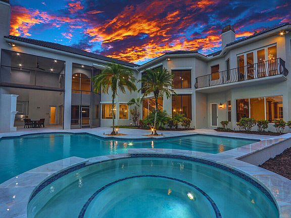 This estate has been meticulously updated to include renovated bathrooms with premium finishes, new "Carrera Oak" hardwood floors, a completely updated kitchen with smart appliances, a refinished marble staircase, and updated lighting throughout. Additional enhancements include new automated entry gates, motorized lanai screens, a state-of-the-art security system, and a freshly painted modern exterior with custom landscape lighting.
