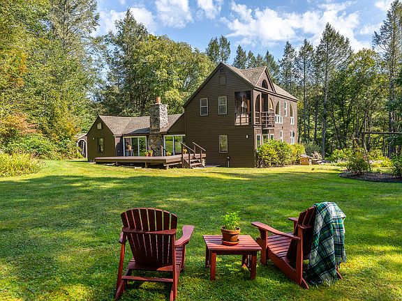 Introducing: The Secret Garden. Slow mornings begin here. Perched on a hillside adjacent to the gentle flow of Sandy Brook, this 1940 country cottage offers 36 acres of privacy, serenity, and timeless charm. The approach is unhurried. Perennial gardens unfurl along winding paths, trellises draped in climbing roses lead the way, and blueberry bushes promise sweet summer harvests. Step onto the bluestone-screened porch and it's easy to imagine lingering over coffee, the morning paper, and the soft soundtrack of the brook. Inside, the heart of the home is the dramatic living and dining room: soaring ceilings, a stone fireplace, and doors on either side welcoming light and nature in. The kitchen, thoughtfully positioned between the dining room and porch, features a propane stove, generous counter space, and room enough for a chef and sous-chef to work side by side. The first floor also offers two bedrooms, a full bath, a quiet office nook, and a mudroom, perfect for tucking away walking sticks and sun hats after a ramble through the grounds. Upstairs, a picture window frames the landscape. To one side, a bedroom (currently used as an office) opens to a balcony overlooking the stone-dotted backyard. Another bedroom and full bath complete the second floor. Outdoors, the level lawn invites games, gatherings, or moments of retreat. This is a home designed to seamlessly blend the boundaries between indoors and out. Truly a place for reflection, creativity, and communion with nature. Located in Colebrook, a town famed for its wholesome Labor Day fair and frog-jumping contest, this is country living at its purest. Just 12 minutes to coffee and groceries, and within half an hour of Great Barrington, Salisbury, Avon, and Litchfield - The Secret Garden is both a sanctuary and a starting point for everything the Litchfield Hills have to offer.