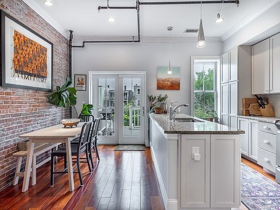 Pure Perfection! This rare upper level duplex is simply exquisite! Sun-splashed throughout, there is a wonderful open layout, tremendous windows, beautiful exposed brick, high ceilings and a custom renovation. The chef's kitchen features stunning cabinetry, a lovely island, gas cooking and sleek contemporary appliances. There is a convenient dining area and glass sliders that lead to the private outdoor space. With 2 generously sized bedrooms, excellent storage, central-air, in-unit laundry and deck, no detail was spared in this classic Boston brownstone. The shared yard is spectacular and ideal for gardening, grilling, entertaining and of course relaxing. Less than a 10 minute walk to the Airport T and amidst wonderful shopping, restaurants and area amenities, this new condo conversion is a fabulous find, so hurry....it won't last! Explore all that East Boston has to offer from the dazzling and vibrant Waterfront to the beaches, new and exciting eateries, all just minutes to Downtown!