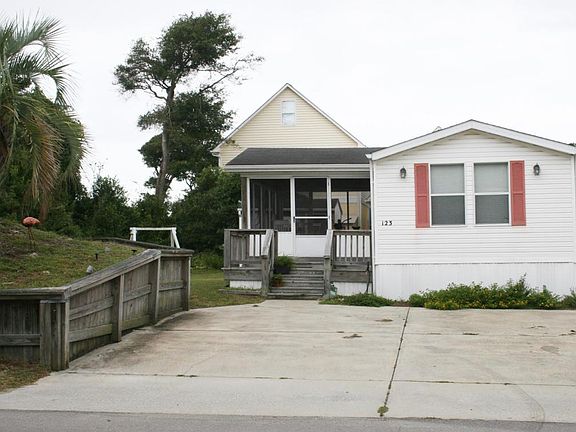 Great ocean side high lot to build the perfect beach cottage or keep the existing mobile home (Oakwood) that is currently there. The home has a screened porch, open deck & outside storage building. Only a quick walk to the neighborhood's private beach access, local shops & dining. An affordable option to have your very own place at the beach!