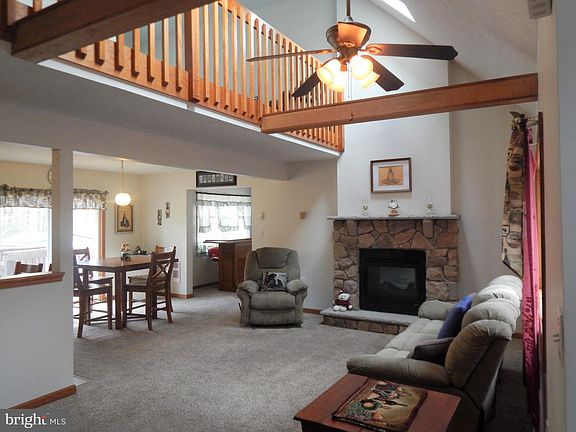 Are you ready to end your search for the perfect 3 bedroom getaway in Locust Lake Village? As you enter into the large open LR/DR/Kitchen space you eye is drawn to the vaulted ceiling with skylights to keep it bright. Take note of the double faced fireplace that accents both the living room and game room. The huge 20 x 36 deck overlooks a wooded area and has access from both the dining area and the first level bedroom. An upper-level rear balcony spanning the width of the home, with access from both the bedroom and the open loft, lets you get a breath of fresh air with your cup of morning coffee. There is plenty of parking with the dual-entry driveway on this corner property. Owners made sure it is well insullated too! Don't miss this opportunity!