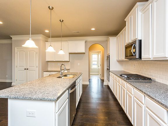 Welcome home to the Florence II! The best of single level living with the flexibility of a huge bonus room and bathroom upstairs. Upon entering from your covered front porch, your foyer opens to the dining room with coffered ceiling, and a living room which could also be transformed into a home office. You will love spending time in the eat in kitchen & family room which flow seamlessly together providing the perfect space to be with friends & family. As you find yourself cooking in your beautifully laid out kitchen everyone will congregate around the huge granite island creating the space for wonderful memories. Retreat to your first floor master suite with double trey ceiling, indulge yourself to a relaxing bath in the soaking tub and rejoice in the size of your walk-in closet! The other 3 bedrooms downstairs are on the other side of the home, providing maximum privacy for your master suite. The opportunities are endless with this wonderfully designed home. You have arrived! Options and upgrades shown in photos may not be included in price.