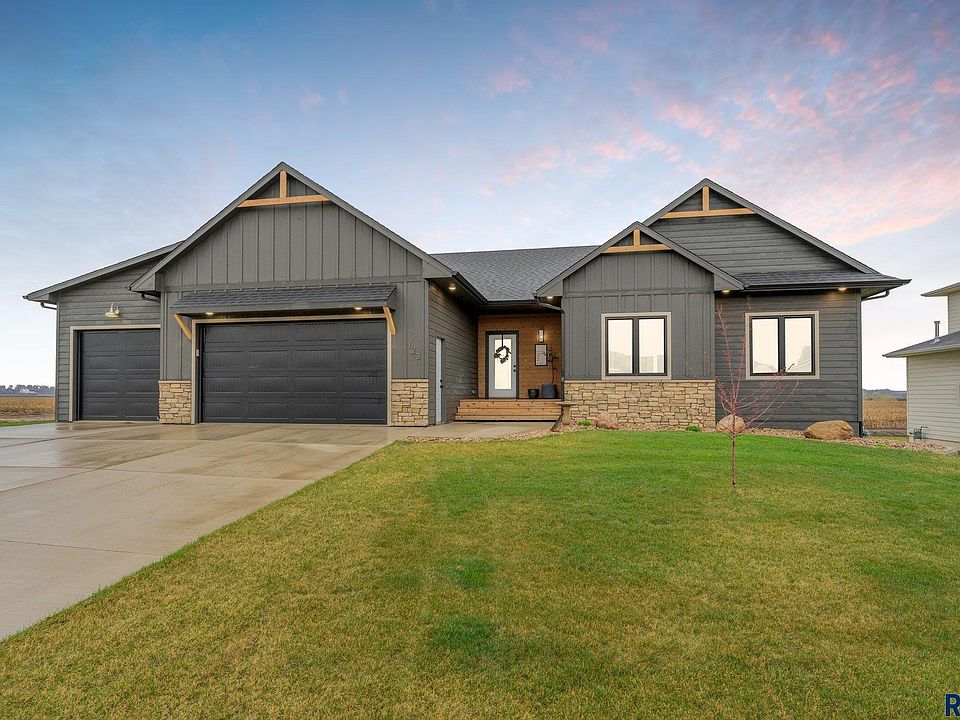 Loving this home is as easy as one. Two. Three. This new age Modern-Farmhouse stunner with enormous curb appeal, character, and charisma is sure to check all the boxes on your list. From the moment you enter you will be captivated with the open concept floor plan. The high ceilings, decorative accent walls, stunning west side views with NO backyard neighbors, oodles of storage space, oversized garage and so much more. Featuring three bedrooms on the main level, large mudroom with laundry and half bath, contemporary pantry equipped with butcher block countertops and an extraordinary arched doorway entrance all add even more one-of-a-kind flare. Other perks include your opportunity to build equity in the unfinished basement which offers space for two more bedrooms, large storage room, one bathroom and a large gathering space and don’t forget a walk-out to the backyard patio, just waiting for you to enjoy the magnificent sunsets in the Valley Springs skies. Located 15 min from Sioux Falls