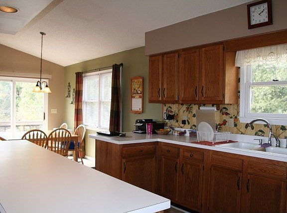 Split level home is open, bright, spacious, & well located between Boone and Blowing Rock, in Blowing Rock School District, and near the BRP. Foyer splits with wide stairs leading to both levels. Upper floor has kitchen with large island and is completely open to living and dining. Living area is set off by brick fireplace with woodstove insert, vaulted ceilings, large windows, and direct access to decking. Master bed & bath, hall bath, and second bedroom complete this floor. Lower level has den with wood burning stove, 3rd bedroom, full bath, laundry, additional storage,and two car garage.