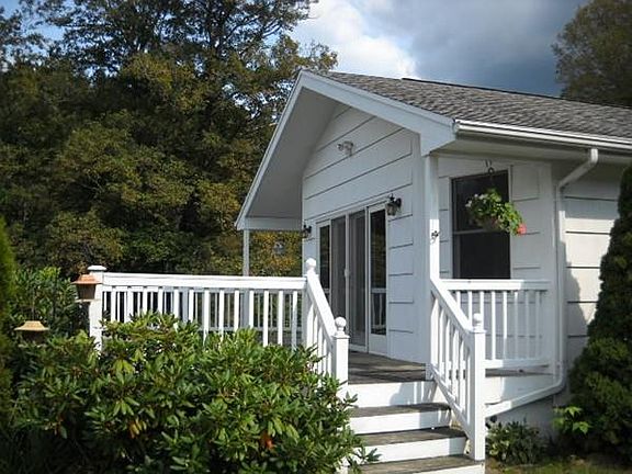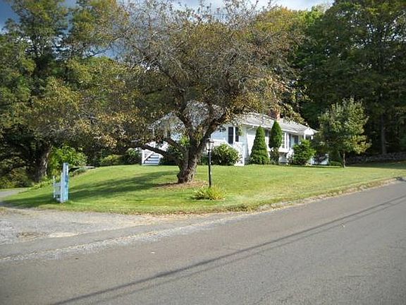 Stunning 3.4 acres surrounds this six room, three bedroom ranch with lovely deck. Large dining room living room open floorplan. Living room boast large bay window and fireplace. Sunny and bright with large glass doors leading out to lovely railed deck. Bedrooms, living room/dining room have wood flooring. Dining room has built in pantry. So much potential to add more living space in the lower level. River runs through back of property with a lovely bridge to cross over to access the back acerage. Rock walls everywhere with patio area and shed with sitting area near the river. You will feel like you are on vacation. Conservation area with trails across the street for enjoyment. Beautiful views when the winter comes. Washer dryer stove and refrigerator are being left as gifts to new buyer. Heating system appx 7 years old and newer hot water heater. In Move in condition recently painted. This home would be a great retirement home or a wonderful starter home.