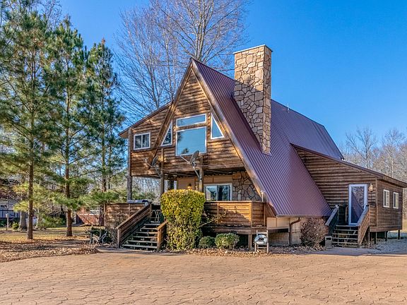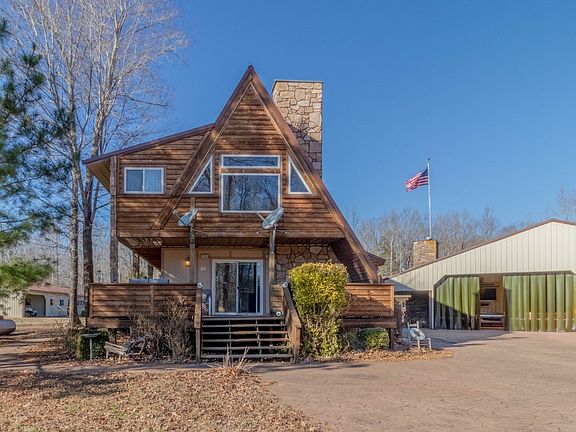 Gorgeous A-Frame Leatherwood home with water access and a breathtaking lake view. Offering 4 bedrooms, 2 full baths, an 1800 sq ft workshop (Air conditioned), and entertaining area with hot tub and stone fireplace. This lake home is perfect for entertaining your family and friends and includes plenty of storage room for all your boats, jet skis, golf cart and fishing gear. This home is also wheelchair accessible and Walking distance from the marina and restaurant, this one WON'T last long.