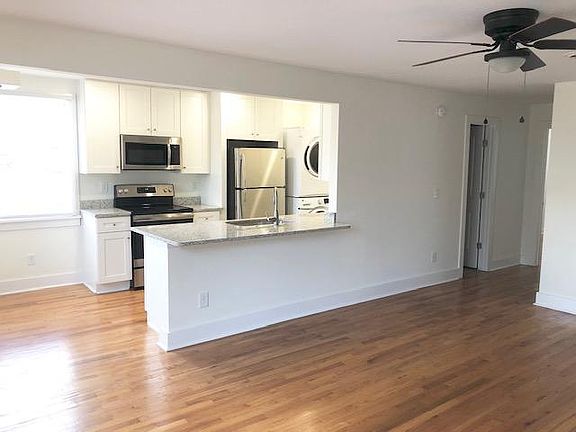 Beautifully renovated two bedroom, one bath apartment just up the street from MUSC. Custom cabinets, stainless steel appliances, granite countertops, hardwood floors throughout, spacious bedrooms with plenty of closet space. Stacked, full-size washer and dryer. Bright, second-story corner unit with private entrance. Shared off-street parking. Great, walkable neighborhood with tons of restaurants and shops. Tenant pays utilities, landlord provides pest control. Security deposit is one month's rent, well-behaved pets allowed with one-time pet fee. Call, text, or email Carson to schedule a showing.