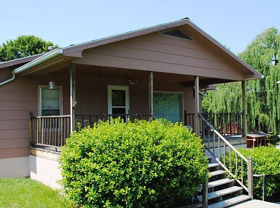 Nice home on quiet street in a low traffic area Two large bedrooms and nice covered front porch with swing. Corner Lot. All on one level with basement for storage