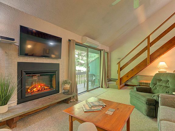 This beautiful clean furnished large condo located in the White Mountains is within minutes of several ski areas! This condo is turn key, everything comes with it. There is enough room for 6 comfortably with an additional bed in the loft, which is also set up with an additional TV and play area. The lower level has three nice bedrooms and 2 bathrooms, one which is ensuite with the master. The main floor has a very open floor plan with a new electric insert stove that provides heat and beauty. The kitchen has been updated nicely, and you have a lovely dining room large enough for many quests. There are two decks to enjoy in this unit. This unit is located just moments from downtown North Conway and shopping outlets are a 10 minute drive away. There are many different selections of ski mountains within a 10-40 min drive. Behind the hotel is a groomed cross country trail. There is a golf course minutes away. Stonehurst Manor has a condo association which keeps up the exterior as well as snow removal. The on-property restaurant/bar is only a tiny walk away. After eating a yummy dinner, sit outside the hotel in one of the chairs overlooking the Moat Mountains and watch the sunset.