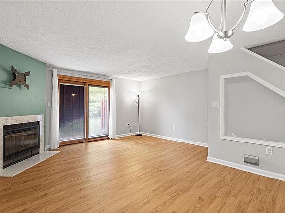 Don't miss this tastefully updated end-unit townhome located in the desirable Castle Creek neighborhood on a cul-de-sac. This move-in ready home boasts new luxury vinyl plank flooring, and an updated kitchen with quartz counters, stainless steel appliances, new backsplash and Kraftmaid cabinets. The open concept living and dining area features a sliding glass leading out to the private rear patio. A convenient, updated half bath completes the main level. The upper floor offers two large-size bedrooms with ample closet space and an updated adjoining full bathroom with granite counters. Additional features include Smart thermostat, a brand new dryer, and a convenient 1-car garage. Conveniently located close to the community pool and playground, with easy access to 228, turnpike and 79.