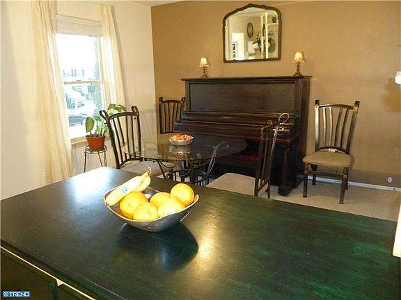 Welcome to this spacious twin in desirable Stony Creek Village neighborhood. There are nice sized rooms and a functional layout. Enjoy a large Kitchen island perfect for entertaining and extra counter space. The rooms are bright with lots of "Anderson Tilt Wash" Windows throughout the home. The Living Room Slider Door overlooks the wooden deck and fenced-in backyard with a lot of room to roam and picturesque view. Half Bath is conveniently located on main floor as well as a mudroom off the kitchen. Upstairs there are 3 bedrooms. The Master Bedroom has his and her closets and the upstairs full bath is accessible from the master bedroom as well as the hall. A walk-up finished attic can be used as a 4th bedroom or bonus room. There are 2 storage sheds on property and a full basement for extra storage. NEW ROOF 2014. Low taxes, no HOA fees and great location! Easy access to 2 train stations, shopping at the Pavilion shops on Broad Street and many nearby Parks and Recreation areas to explore. A rare opportunity...make your appointment today! Showings begin Tuesday March 31st