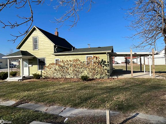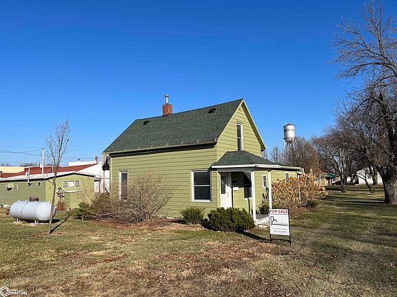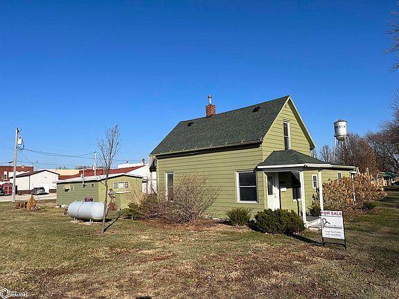 This is a nice house 3 bedroom 1 bath house that has had a lot of work done to it, is very low maintenance and sits on 3 big lots. In the last 5 years it's had a new roof, windows, deck, sliding glass door, plumbing, spray foam insulation, flooring, kitchen cabinets and lighting. 2 bedrooms and bath located on main floor with another large bedroom upstairs. The living room has sliding glass doors that lead out onto a large concrete patio area. The unfinished basement has had the walls spray foamed as well as under the main level floors. Kitchen has all new cabinets, flooring and light fixtures and all appliances are included. Absolutely move in ready and located in a very centralized section of Humeston, just 1 block from all town conveniences. Also included is an outside building used for storage that was once a bunkhouse for hunters. The very large yard has many trees planted on it, including several apple trees.