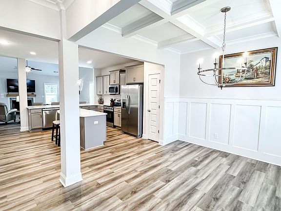Open loftGourmet kitchenVaulted ceilingCoffered ceilingBright open floor planLaundry roomOversized backyard