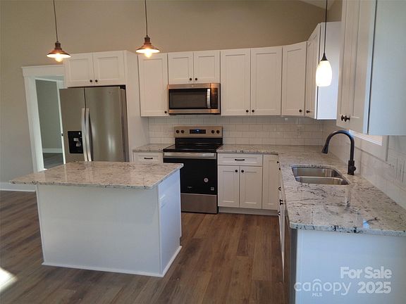 Welcome to this beautifully crafted 3-bedroom, 2-bathroom home offering 1,314 square feet of modern living space on a spacious .68-acre lot. Built in 2025 by a local contractor, this home features a split-bedroom floor plan and vaulted ceilings. Step inside to discover a bright, open floor plan with granite countertops in the kitchen and bathrooms, adding a touch of luxury. This homes design maximizes space and functionality, making it perfect for comfortable everyday living. The level front and backyard provide ample space for outdoor activities, gardening, or relaxing in your private retreat. Whether you’re enjoying your morning coffee on the front porch or hosting a weekend barbecue in the backyard, this home offers the perfect setting. Located in a peaceful neighborhood, you’ll enjoy the convenience of being just minutes from downtown Forest City & local shopping centers. Professional landscaping, concrete driveway and interior cleaning coming soon.