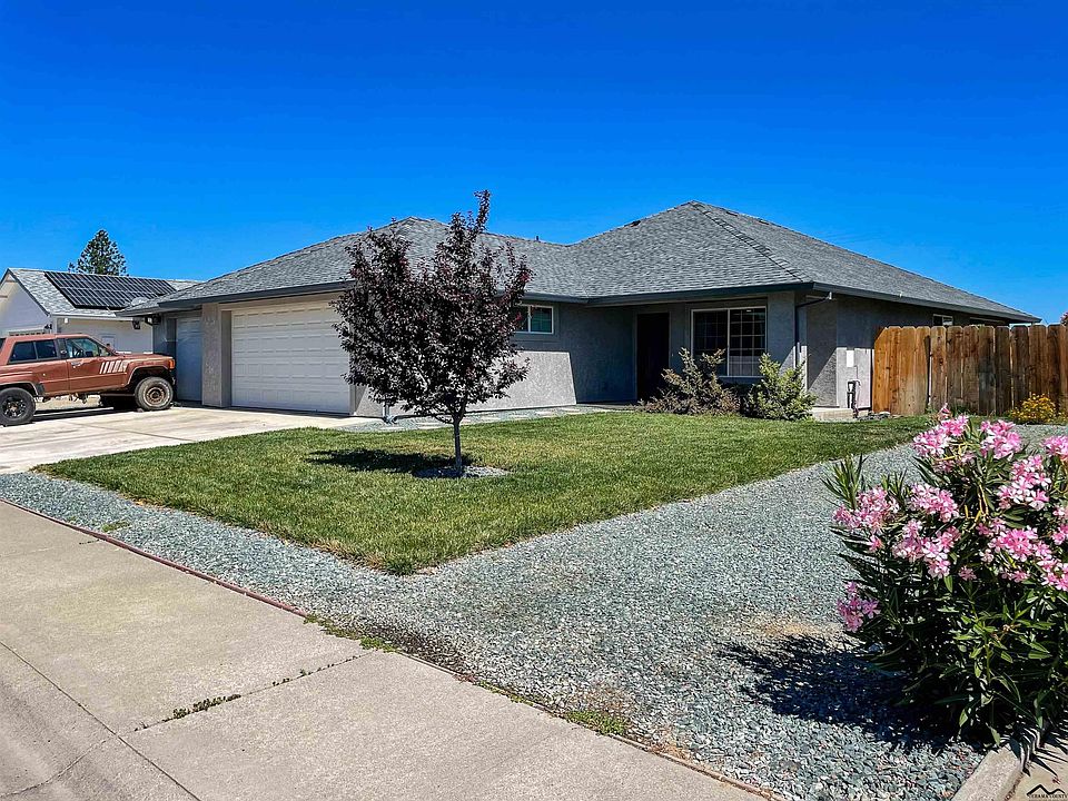 You'll fall in love the minute you see this property. This stunning home built in 2020 with a 3 car garage, a very large lot with an RV gate in back and RV parking in the front has 3 bedrooms and 2 bathrooms. Situated in a quiet and coveted neighborhood, this well maintained property features an open floor plan with sliders overlooking your covered patio area with a spacious backyard surrounded by greenery, great for entertaining and room to add a shop and a pool. Open floor plan boasting a large island, granite countertops, mahogany cabinets, and a pantry and recessed lighting throughout the house. After a long day, retreat to your master suite and enjoy your jetted tub for some relaxation. Master bedroom has a walk-in closet, traditional closet and a second exit to the patio. The other 2 bedrooms are very spacious, and one has an exterior door, as well. The 3 car garage is more than enough room to park your cars, toys or even some storage. Great location only a minute from town and I-5 Freeway. This one won't last!!! Lot size, sqft, year built, and all information taken from county record and seller. Buyer to verify all information to satisfaction.
