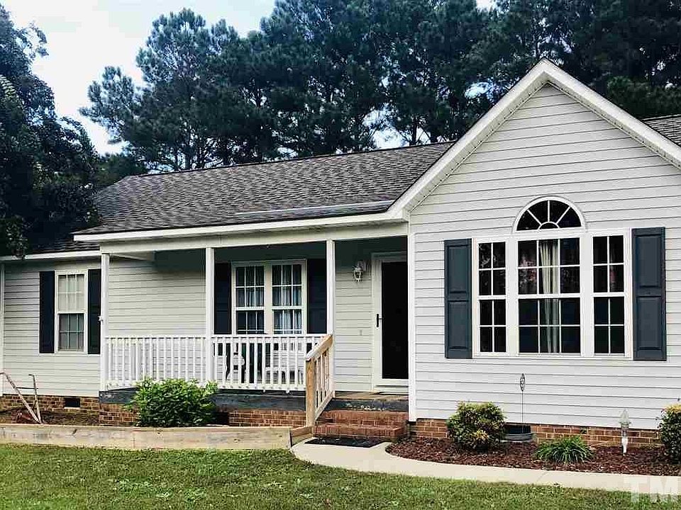 3BR/2BA Home in Four Oaks with rocking chair front porch, living room with laminate flooring and FP that was converted to cabinets, sunny kitchen and breakfast room, master bedroom with cathedral ceiling, master bath with dual vanities and wainscotting, 2 nice secondary bedrooms, tile floors in the kitchen, breakfast, and bathrooms. Large deck, fenced rear yard, and storage building. Close to downtown Four Oaks, grocery stores, restaurants, etc. Convenient to US 301, I-95, and I-40.