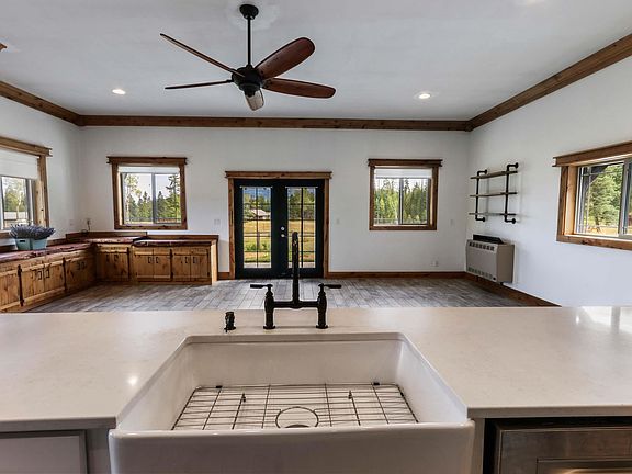 Escape to the country! You don' have to go far for this unique, upscale rancher on pastoral 5 acres with fantastic views and perennial crop of lavender close to town, far from ordinary. Enter through the courtyard, hang your hat in the entry and you're greeted by a gorgeous, open floor plan with tile floors, custom Alder built-in cabinetry & Tamarack counters, all leading to a covered patio with big mountain views, including Schweitzer Mountain. The kitchen is a chef's dream - central quartz island, two range/ovens and loads of cabinetry and counter space. Your main bedroom boasts a large walk-in closet, spacious bath with custom walk-in shower and a private covered porch, the perfect place to enjoy sunsets. Inside spaces lead to insulated and heated 30x30 garage, RV site, wood shed, big fenced garden with storage shed, and level land with fruit trees, berries and fields. All in a quiet setting on a private road just 8 miles to Sandpoint, close to Lake Pend Oreille, trails and public lands.