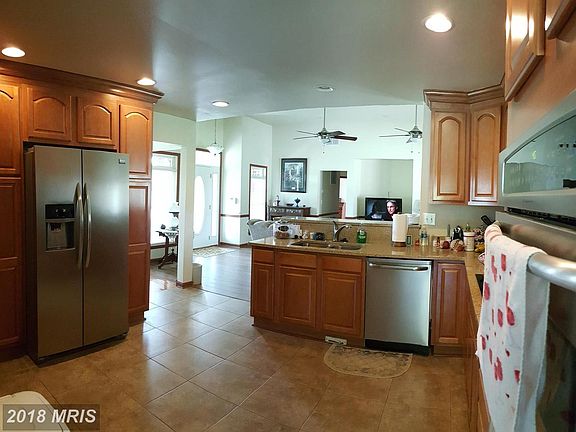 Nearly 3000 finished Sq Ft Contemporary Ranch w/ FULL unfinished basement in S. Berkeley Co. 5 min to Virginia. Open & spacious with granite counters, ceramic tile/hardwood floors, central vac, 3 car garage, huge master w/ 2 walk-in closets, jet tub, tile shower. Upper bonus room off family room. Gas Fireplace, Stainless Appliances, Security System, Approx sq ft, paved drive, 2.5 Acres. NO HOA!