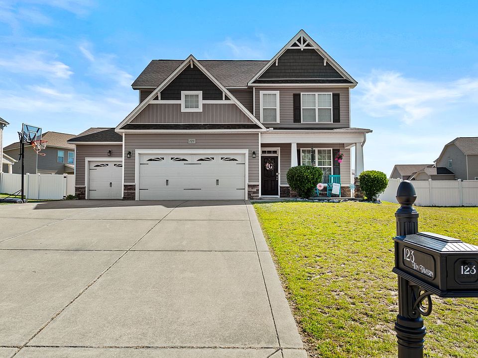 Nestled in the highly sought-after community of Lexington Plantation, this stunning and well-maintained home is conveniently located with a short drive to Fort Bragg. Boasting 4 spacious bedrooms and 2.5 baths, this home features wood-look tile flooring. The primary suite is located on the main floor for ultimate convenience and includes direct access to the laundry room. Enjoy hosting in the formal dining room with coffered ceiling, and cook with ease in the gourmet kitchen, complete with a center island and granite countertops. The cozy living room with fireplace creates the perfect space for relaxing evenings. Upstairs, you'll find three additional bedroomstwo with walk-in closetsa flex room ideal for a home office, gym, or playroom, and a full bath. Step outside to a screened-in patio that opens to a spacious backyard. With a double garage and an additional single private garage, there's no shortage of storage or parking. No smoking. Pets are negotiable with a $250 nonrefundable fee for the first pet and $150 for any additional.