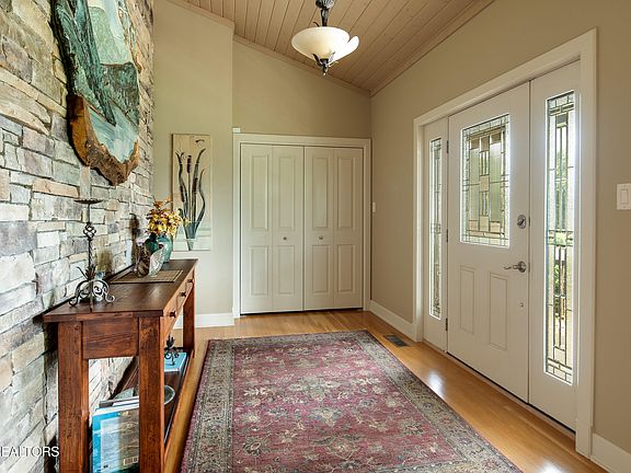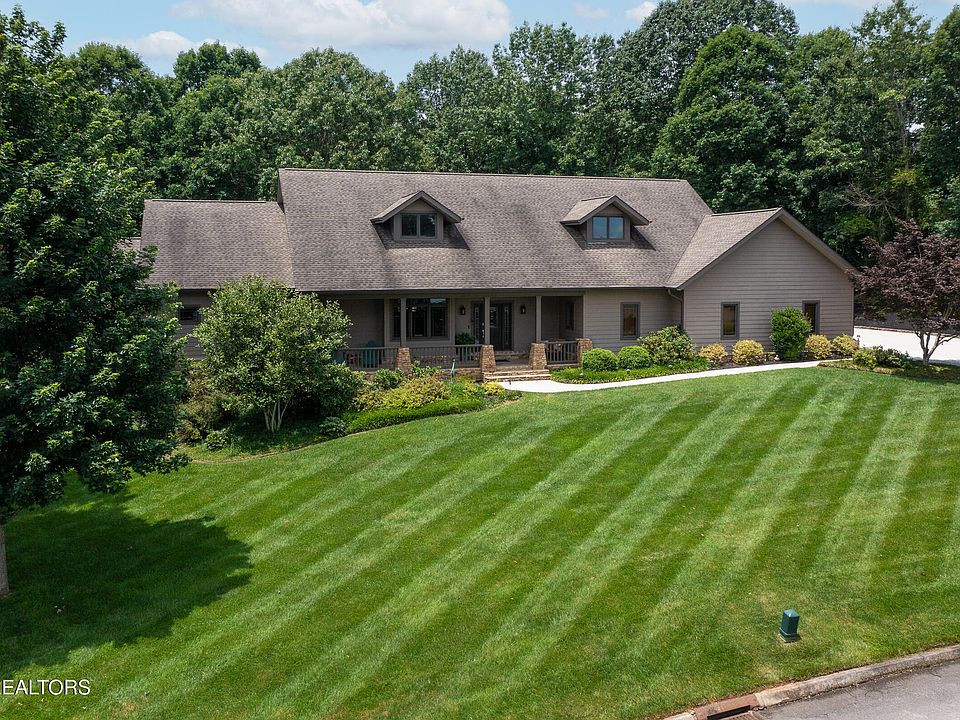 This stunning custom built lakeview estate was designed for luxury & comfort offering panoramic lake views of Fort Loudon Lake from the large covered front porch & picture windows. Every detail of this home reflects superior quality from the masterfully designed stone entry wall which includes a large, commissioned art piece, wood clad vaulted ceilings, rich cherry cabinetry & stone gas log fireplace all enhancing the beauty of the space. The open floor plan lends itself to entertaining and the formal dining room is the perfect gathering place. The kitchen area has ample counterspace accommodating bar stools. The beautiful rich cherry cabinetry includes two built-in pantries and there is an additional large walk-in pantry. The double oven, Bosch dishwasher and gas cooktop will make entertaining a breeze. The breakfast room has large picture windows overlooking a beautifully landscaped lawn backing into a scenic wooded area. The screened in porch is perfect for relaxing and enjoying the idyllic setting. There is also a large Trex deck perfect for soaking up the sun. The primary suite features two large walk-in closets, one is lined in cedar. The primary bath includes shower, whirlpool tub, double sinks and heated tile floor to keep your toes toasty and warm. There are two additional bedrooms and an office on the main level. If you need more storage space, the extra-large main level laundry room is the loaded with cabinets, a center island, built-in ironing board, wet sink & extra storage within easy reach. There are no steps into the house from 3-car side entry garage which includes an additional workshop with wet sink and space large enough to park a boat which might come in handy with a neighborhood boat launch nearby. The unfinished walk-out basement has an additional 2351 square feet of heated and cooled storage space and is plumbed for an additional full bath. The unfinished space could be easily finished to suit your needs. Extras abound throughout including cellulose insulation and state of the art geothermal saving big money on utilities, central vacuum saving your back. Situated on a low traffic Cul-de-sac Street and conveniently located 15 minutes from shopping in Turkey Creek and West Knoxville.