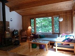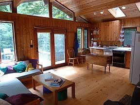 Norway-Waterfront Lindal Cedar home at phenominal price! 100' priv beach on Sand Pond. Lots of glass, vaulted ceilings, 2BR/1BA $186,900