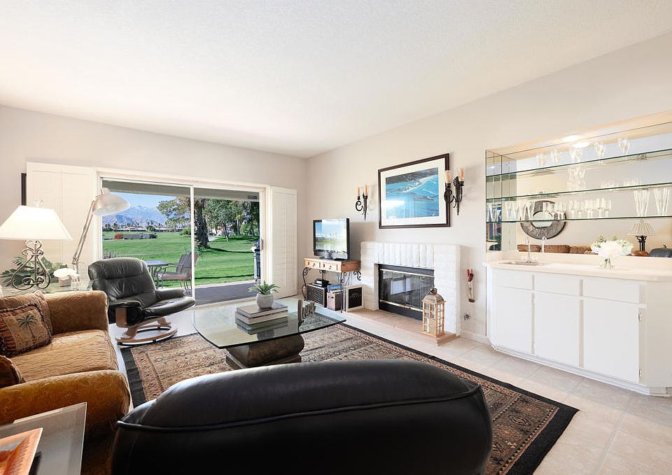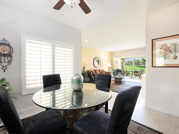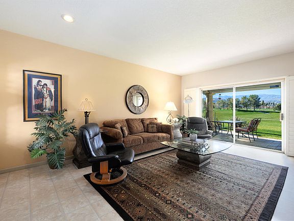 Absolutely fabulous location! Located at the end of a cul-de-sac, this 2 bedroom/2 bath lower level condo in Desert Falls CC boasts panoramic golf course and western mountain views. The par 3, 12th hole and fairway views can be appreciated from the long driveway to the attached 2-car garage. Enjoy views of the currently snow-capped San Jacinto mountain across multiple golf course fairways as you bask in the sun on the back patio. You can also stretch out on one of the lounge chairs at the nearby community pool - one of 22 community pools in Desert Falls. Gorgeous green golf course fairways and stunning blue skies can be enjoyed throughout the interior of this Desert Falls condo. Short term rentals are allowed in this Villas section of Desert Falls. Desert Falls Country Club is semi-private - memberships available or pay-as-you-play. Homeownership includes a full-service fitness facility with updated aerobic machines, weight circuit, free weights, and classes. Also included are robust tennis and pickleball activities. Located mid-valley, the Desert Falls CC community is close to dining, groceries, and retail.