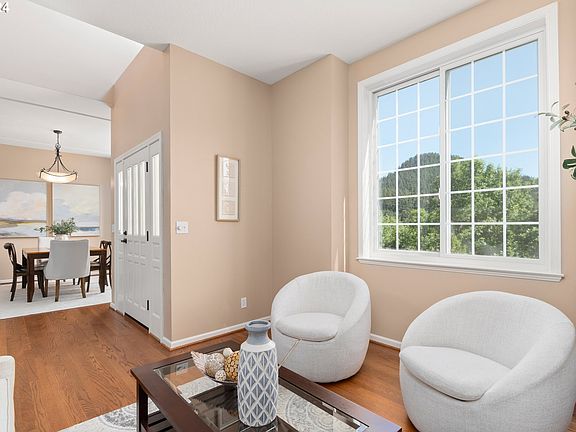 This lovely home built in 1990 offers 3 or 4 bedrooms, 2.1 baths with approximately 2530 SF. Unobstructed views of the mountains and fields are right out your front door. This home is south facing, and is very light and bright. The desirable South Eugene location and schools, with hiking trails nearby is a fantastic combination. Tall ceilings, hardwood floors, skylights, and lots of windows (some newly replaced), add to the charm. A living room and "great room", formal dining, and in-kitchen breakfast area are all open to each other, creating a nice flow. Main level laundry and a main level 4th bedroom or office provide some flexibility. The upstairs primary bedroom is a true retreat... gorgeous views, double sided gas fireplace for cozy, winter evenings reading in bed, dual sinks, and an oversized walk-in closet. Two other bedrooms up (one could be used for a bonus room). A 3-car garage, workspace area and easy driveway entrance provide an extra bonus. Heat pump and FA gas furnace keep this home heated and cooled for your maximum comfort. Outside decks, and a private, large yard, create a peaceful environment.