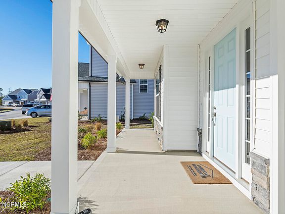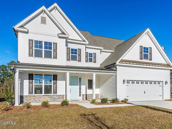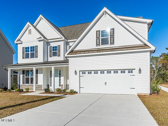 Welcome to the Masonboro, built by American Homesmith on this great corner homesite with spacious flat backyard. Move in today!!! The covered front porch creates a great outdoor living area and welcomes you to this spacious 2 story, 4-bedroom, 4-bath home with white exterior, accented by brown shutters, stone accents and metal roof over the garage entry. The open concept plan showcases a formal dining room and a spacious kitchen overlooking the family room and large breakfast area. No detail has been left behind in this home. This kitchen features white perimeter cabinets, accented by large center island in denim blue with farmhouse sink. Whistler quartz countertops, white subway tile backsplash, stainless steel appliances including a natural gas cooktop with hood vent and wall oven and microwave, making this home perfect for entertaining. The bright and spacious family room has a shiplap fireplace with natural gas logs and opens to the 250 square foot covered porch. The first floor is completed by a guest suite and mudroom off of the garage. Upstairs there is plenty of room for all. The master suite boasts a trey ceiling, two sinks, walk-in shower and a generous walk in closet with custom wood shelving. Two additional bedrooms, bathroom, large rec room or fifth bedroom with bathroom, and a laundry room complete the upstairs. This home features a large fully sodded and irrigated yard, gutters on the front and back of the home, laminate flooring on the first floor living area and natural gas tankless hot water heater. The Sanctuary at Forest Sound is centrally located in the heart of Hampstead. 15 minutes to Wilmington or Surf City/Topsail and just 1 mile off the Intracoastal Waterway. Future proposed amenity includes a boat storage area.