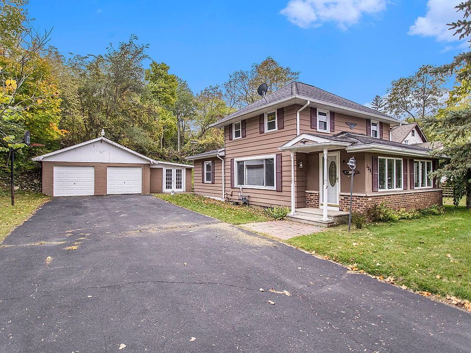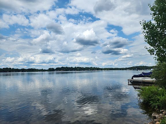 Amazing Fine Lake view. Fantastic setting with gorgeous lake views. Fresh paint and floor covering throughout. Updated kitchen.1350 s.f of living space. 3 bds, 1.5 baths Perfect for weekend getaway or year round living. Fine Lake is a 320 acre all sports lake with depth of 48 ft. with great fishing.. Extra large 2 car garage has protentional for man cave or she shed as would additional shed. Sellers family had a dock & a boat across the street for over 40 yrs.