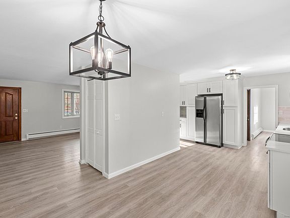 A fully renovated ranch that delivers exceptional value, modern finishes, and low-maintenance living. This 3 bedroom, 2 full bath home has been updated top-to-bottom, starting with a brand-new kitchen featuring quartz countertops, a tiled backsplash, new cabinetry, and stainless-steel appliances. Both bathrooms have been stylishly remodeled, and the interior features all new flooring, lighting, and fresh paint. A warm fireplace creates a focal point in the main living area, while the heated, finished sunroom adds year-round space ideal for an office, sitting room, or play area. The lower level offers walk-out access and a wood-burning stove, providing excellent potential for a workshop, gym, or media room. Key long-term improvements include a new septic system, new well tank and pump, and a new rear deck, offering peace of mind for years to come. Situated on a large lot with an attached garage, level driveway, storage shed, and washer/dryer included, this home offers both practicality and fresh, updated style. Convenient to town, schools, and commuter routes - a smart, move-in-ready investment without the renovation stress. Simply unpack and enjoy.