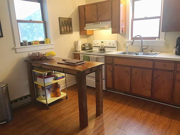 1.5 Bath 2/3 Bedroom 1,140 sq. foot apartment is available for rent. Located in the heart of Millheim. Just steps away from Elk Creek Cafe, Inglebean Coffee House, etc. There is a large living room with high ceilings and a kitchen with new stainless appliances. Adjoining the kitchen is a half bath and a rear foyer that opens up onto a large sheltered porch. The back yard contains a long stretch of lawn with a decent degree of privacy. The neighbors are friendly and quiet. Upstairs are three rooms and a full bath. 2 of the rooms are connected, therefore requiring a 2/3 bedroom description. The upstairs boasts original flooring dating back to 1870. Street parking is available just out front and off street parking is available at the rear of the property. Washer and dryer included. Tenant pays electric (heat). Water, sewage and trash are included. Pets are permitted on a case-by-case basis with a non-refundable pet deposit ($250) and monthly pet rent ($25/pet/month). Tenant is responsible for electric and lawn maintenance. Water, sewage and trash are included.