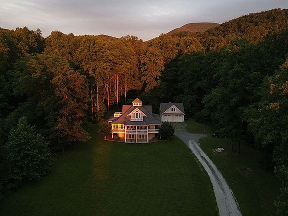 Showings by appointment only to prequalified buyers. Agents welcome (2% buyer agent commission offered). Call/text 434-962-9693 or Click below on the "Property Owner" link under "Listed By" to email. Home offered fully furnished (less a few select art pieces). Home also available fully furnished for long-term rental at $3,600 per month (no pets). This home is one of a kind! You won't want to miss these sunrises! Gorgeous views and wildlife abound. Situated on quiet road with elevated views and adjoining mountain stream. Huge four sided wrap around porch, including a large screened porch. Open kitchen and dining area with granite counters and pantry. Main level features the master bedroom and bath, as well as a sizable office/guest room, and powder room. Each upstairs bedroom has a walk out deck with views and walk-in closet. High end finishes, including walnut hardwood floors, composite decking, stainless steel appliances, and tiled bathrooms. Fully finished basement would make a nice separate apartment or rental unit. Massive detached garage with ample storage and stairs to unfinished future space above. Smart home security system installed. Wired for Firefly 1Gbps fiber internet. Minutes to Wintergreen, Blue Ridge Parkway, golfing, skiing, and hiking. Property is perfectly suited for year-round living, 2nd home, or rental property. Custom Built Home - Built in 2015 5BR, 4 1/2BA 15.18 Acres Wrap-Around Nantucket Porch Walnut Hardwoods throughout Bold Stream on Property Total sqft includes finished basement. 1st Floor Kitchen, Family Room with Gas Fireplace Dining Room, Laundry, Half Bath, Office/Guest Room Master Bedroom w/ Master Bath 2nd Floor 2 Bedrooms, 2 Full Baths 3rd Floor Widows Walk Basement Finished walk out basement 1 Bedroom, Full Bath, Family Room, Partial Kitchen, & Storage Areas Directions From 250 turn onto 151 toward Wintergreen, pass Blue Roofed Ski Barn, Right on 628 (Rhue Hollow Road). Right on 764 (Walk Around Lane), property on left. From 29 south: right on rt 6, left on 151 past Nellysford, right on Rhue Hollow, right on Walk Around. **Please do not drive up to the house without an appointment.