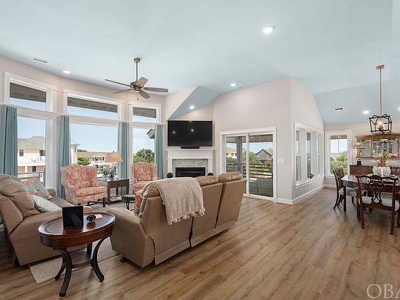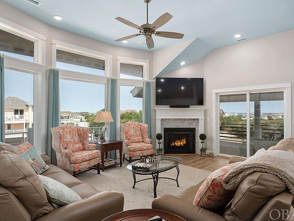 This Coastal Craftsman home was custom built by Olin Finch. Located right in the heart of the prestigious walking Village Of Duck, this is a one of a kind opportunity to live in the quiet neighborhood on Poteskeet Village! The home is one of the newest house built on the market for sale in all of the Village of Duck. This Home features 4 bedrooms 3 full Baths and a half bath with an additional office space and an elevator. The home also has tons and tons of storage on the ground level! On the top level you will find an open floor plan with a gourmet kitchen with Quartz countertops, custom cabinets, All upgraded top of the line stainless steel appliances, double wall oven countertop gas range wine cooler, built-in Microwave and dishwasher, a large open living room with a gas fireplace and ocean views to boot, a large dining room for entertaining guests, and a lovely screened in porch right of the living room with excellent ocean views. The top floor also hosts the main ensuite with a custom bathroom with a tile walk-in shower, and a walk-in closet. It also has access to the front deck perfect to enjoy your morning coffee. The mid-level hosts another ensuite and two other bedrooms with a buddy bath, the large 13'x10' office also has a closet, and a huge laundry room with a utility sink! The home also features an elevator to effortlessly access all three floors. The ground level has a dry entry with access the the elevator, a full size garage with a large storage/workshop off to the rear of the garage, another huge storage room near the dry entry door and a golf cart garage. Washer and Dryer do not convey. Room to add a private Pool site plan in the associated docs. This home has it all. you've got to see it to believe it!