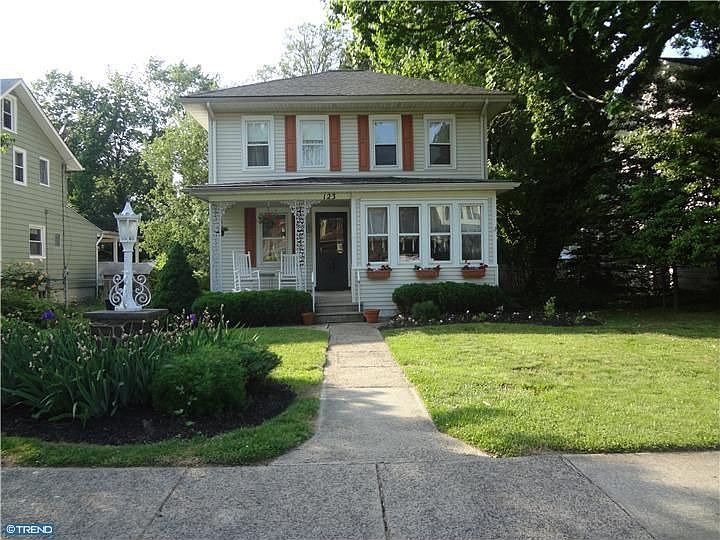 Feel right at home the moment you step in the door. Two Story Colonial home features 3 bedrooms, 2 full updated bathrooms with tile floors, spacious open living room with beautiful hardwood floors that also flow into the dining room, playroom/office off dining room, newer kitchen with granite counter tops, deep sink, and pantry. Cozy family room conveniently located in the rear of home-very quite place to unwind and watch a movie. Home has been well cared for and updated in all the right ways. BRAND new roof, newer central air, 2 zone heat, huge rear yard that backs up to Cherry Street-potential for driveway back there if needed. Open front porch, rear patio, basement for storage and walk up attic. All this on a very picture perfect street in desirable Audubon. Close to parks, downtown main street, and train station.Borough approved installation of a driveway in the front of home-left side when facing.