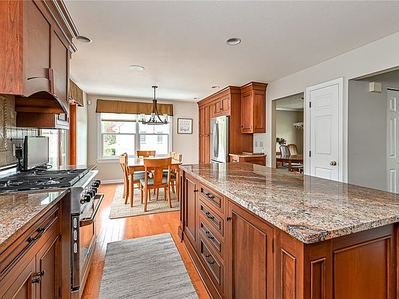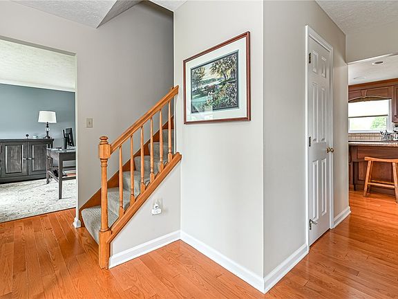 Incredible Home on a quiet street. Exceptionally well maintained and updated two story with hardwood floors accenting the entire first floor. The gourmet kitchen boasts granite countertops, large center island, upgraded custom solid wood cabinets, tile backsplash, stainless steel appliances, and large eat in area. The expansive family room is open from the kitchen and offers a brick gas fireplace, built-ins and cathedral ceilings. The living room makes for a great home office. The dining room is generously sized and great for Holiday gatherings. Upstairs you will find 4 large bedrooms with ample closet space. The Owners bedroom features a luxury bath with marble and glass shower, double granite vanity. The hall bath also offers marble tile. The walk out lower level offers a large game room with adjoining full bath. Outside you will find a private yard with lush landscaping and sprinkler system. Relax on the oversized trex PVC deck. Enjoy quiet evenings on the lower-level covered patio.