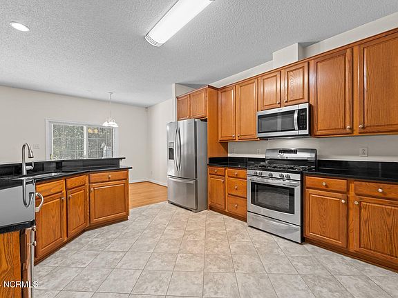 Welcome to this charming 3-bedroom, 3-bathroom brick home nestled on over 3 acres in the desirable Home Place neighborhood of Craven County, offering the perfect blend of privacy and convenience. With a Pollocksville address but located within the Craven County School's district, this home boasts open-concept living spaces and a split floor plan designed for modern comfort. Enter inside to a welcoming foyer that leads to a formal dining room, perfect for hosting dinner parties. The spacious living room features a cozy fireplace and flows seamlessly into the kitchen, which is equipped with stainless steel appliances, a pantry, a breakfast bar, and an eat-in dining area. The primary suite, located just off the kitchen, offers a private retreat with a walk-in closet, dual vanity sinks, a walk-in shower, and a luxurious soaker tub. On the opposite side of the home, you'll find two guest bedrooms and a full bathroom, ensuring privacy for guests. Upstairs, a versatile bonus room with a full bathroom provides the perfect space for a home office or media room and also runs on it's own HVAC. Head out back to relax on the screened-in porch overlooking your private backyard oasis, or fire up the grill on the attached deck. With over 3 acres of land, there's plenty of room for outdoor activities. Located just a short drive to Historic Downtown New Bern and Carolina East Medical Center, this home offers peaceful living with easy access to local amenities. Don't miss the chance to make this beautiful property your own! Call us today to schedule your private tour. **Some photos may be virtually staged.