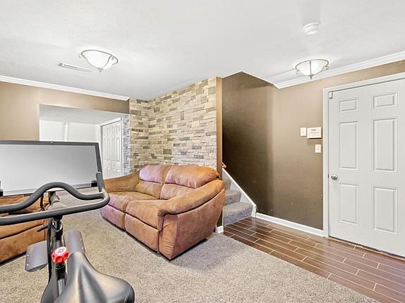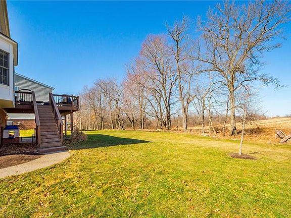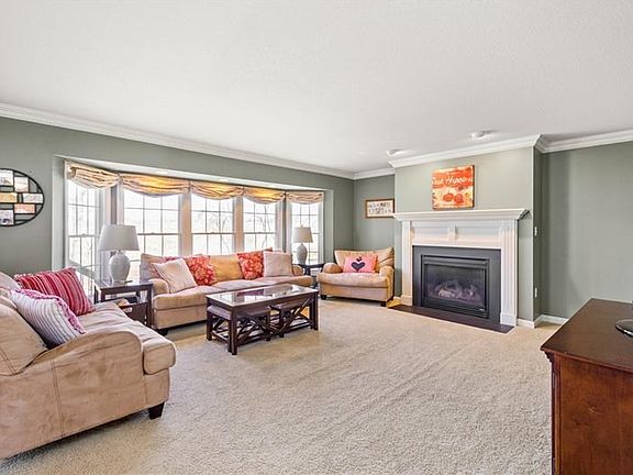Details to love with a floor plan to live in! Original Heartland Home updated with lovely details as crown molding, and a big rear deck. This is a great lot with level back yard and farmer's field behind - great privacy, great views! Welcoming front porch with space to sit and enjoy the day, light-filled entry with a den tucked behind French doors to the right and a spacious dining room to the left. Family room boasts a beautiful wood trimmed fireplace and recessed lighting accents a big bay window overlooking that great rear view. Finished lower level walks out to under deck patio. Kitchen features lots of cherry cabinetry, stainless appliances, island, and sliding glass doors to deck. Peace of mind with a newer hot water tank, security system and invisible dog fence a bonus!