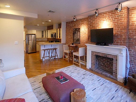 BROKER FEE PAID - Beautiful, bright, and large 1 Bed/1 Bath with Private Terrace. Amazing downtown location - just minutes to PATH and Bus. Rich with character and charm, this condo boasts Exposed Brick throughout the Kitchen & Living Room. Large kitchen with tons of counter & cabinet space as well as Stainless Steel appliances, Dishwasher & Breakfast Bar. Even room for small dining/bistro table. Bedroom in rear of unit has loads closet/storage space with direct access to your secluded terrace! Central A/C, Hardwood Floors throughout, Decorative Fireplace. FREE Washer/Dryer on the first floor. Small dog may be considered with landlord approval, sorry no cats.
