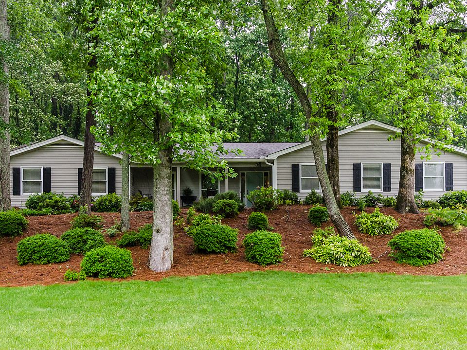 Charm and updates throughout this rare STEPLESS ranch in active swim/tennis! Features hardwoods, exposed brick wall, vaulted ceiling with exposed beam, cozy fireplace, huge mud room, large bedrooms, open floor plan in living area and brand new bathroom in master suite...just to name a few! Home & n'hood perfect for young families or mature adults. Multiple outdoor living spaces for relaxing on screened back porch/rocking chair front porch and easy entertaining on the back patio with fire pit! All steps from pool, tennis courts and playground! Top ranked Cobb schools!
