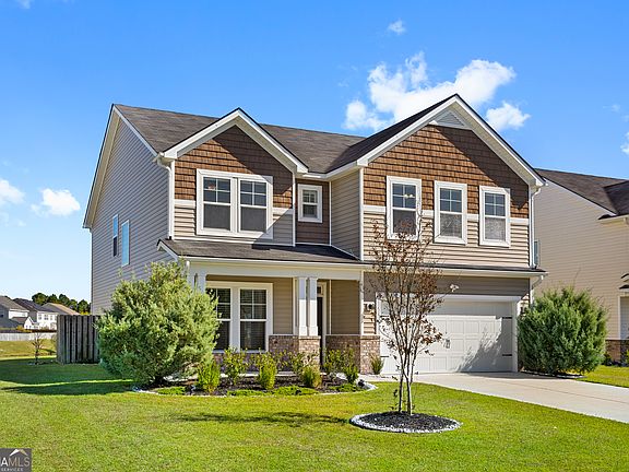 Welcome to 123 Wind Willow Drive, a beautifully crafted home with serene lagoon views. This Richmond plan offers a spacious layout with durable luxury vinyl flooring throughout the first floor, ideal for modern living. The living area is highlighted by a cozy fireplace and custom built-ins, perfect for both relaxation and entertaining. The kitchen features granite countertops, a stylish tile backsplash, and ample cabinet space, creating a functional and elegant cooking space. The elegant staircase, with stained oak treads, handrail, and wrought-iron balusters, leads to the second floor. The primary suite is a true retreat, offering a tray ceiling and a luxurious master bath with a separate shower, a garden tub, and tile flooring. Enjoy outdoor living with a charming front porch, a large screened-in porch, and an additional patio perfect for grilling and entertaining. Located just minutes from I-95, local shopping, schools, and only 20 minutes from historic Savannah, this home offers both convenience and tranquility. Don't miss the opportunity to own this stunning property in a highly sought-after location!
